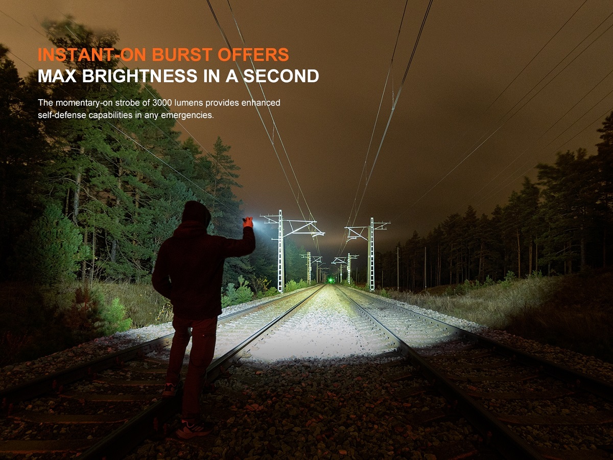 Note: According to the ANSI/PLATO FL1 standard, the above specifications are from the results produced by Fenix through its laboratory testing using the Fenix ARB-L21-5000U battery under the temperature of 21±3°C and humidity of 50% – 80%. The true performance of this product may vary according to different working environments and the actual battery status.